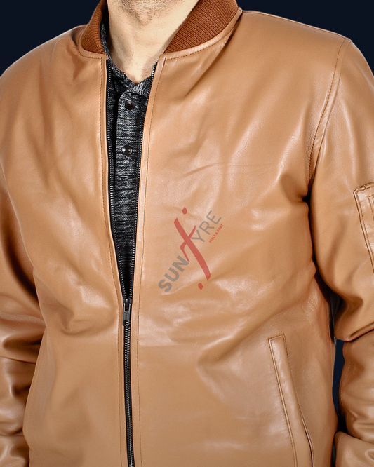 Original Lambskin Cognac Bomber Leather Jacket For Men (SF699)