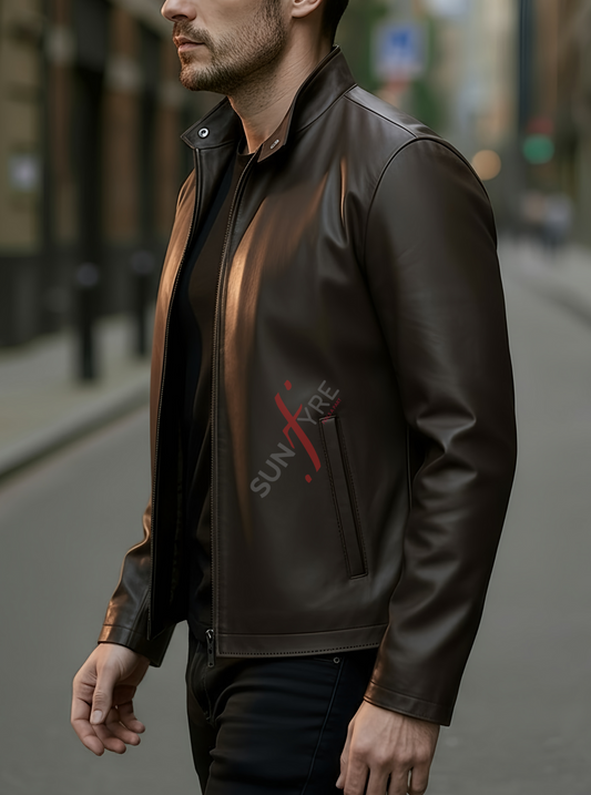 Leon Coffee Brown Racer Leather Jacket For Men (SF621)