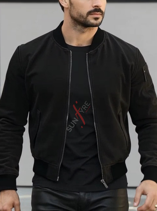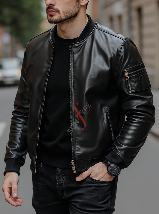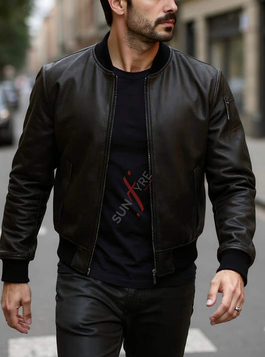 Black Bomber Leather Jacket For Men Lambskin (SF104)