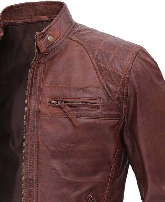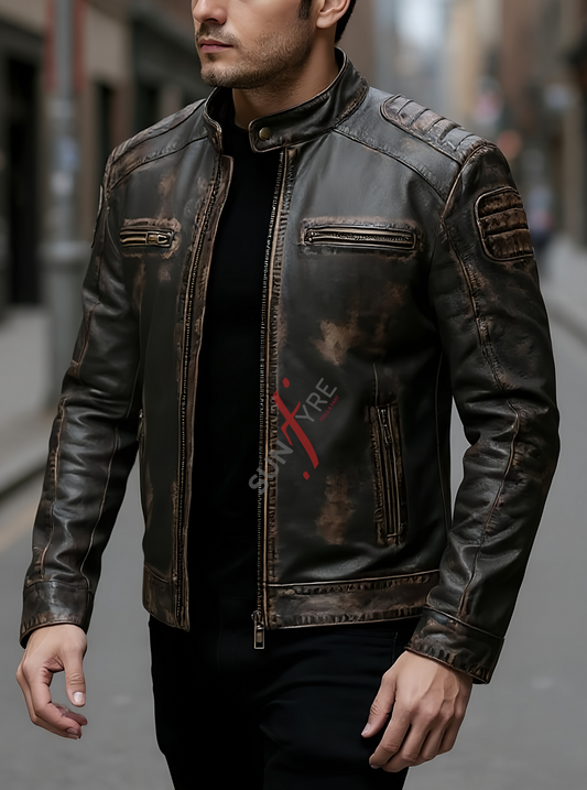 Cafe Racer Vintage style Brown Distressed Leather Jacket For Men (SF579)