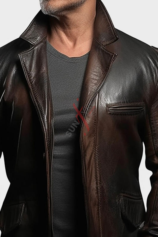 Distressed Dark Brown Leather Blazer For Men Real Sheepskin (SF533)