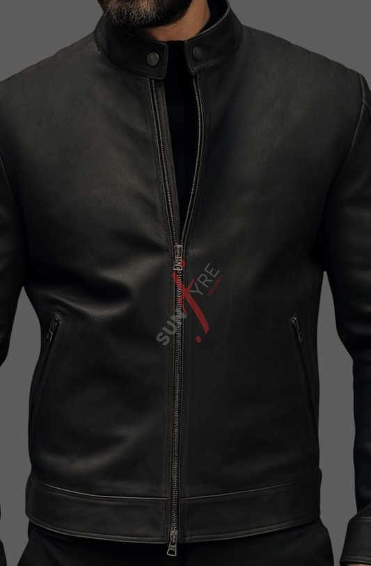 Matt Black Cafe Racer Leather Jacket For Men Sheepskin (SF624)