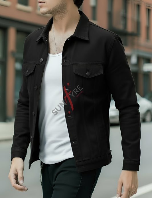 Feon Black Trucker Nubuk Leather Jacket For Men (SF115)