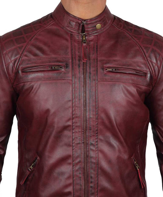 Distressed Cafe Racer Burgundy Real Lambskin Leather Biker Jacket For Men (SF116)