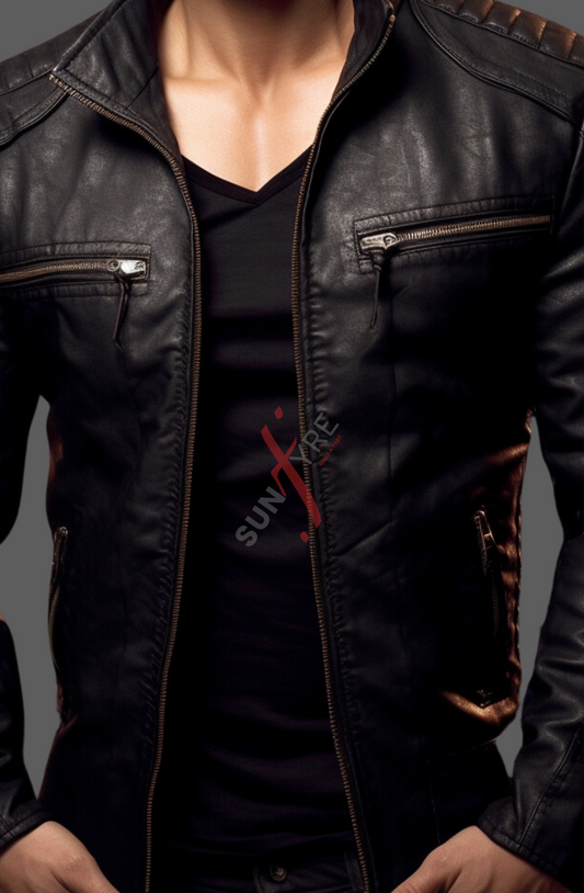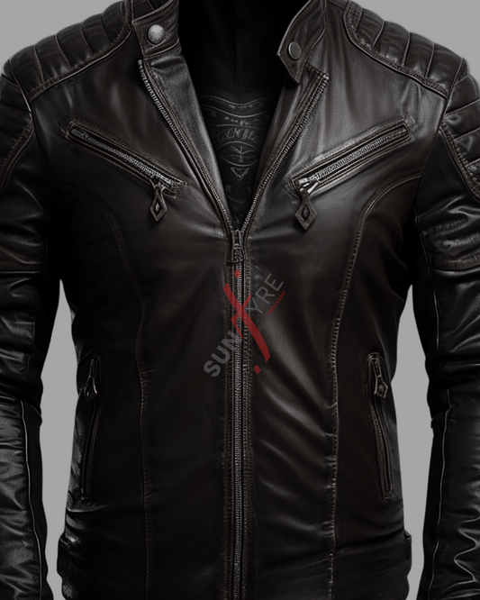 Cafe Racer Black Leather Biker Jacket For Men Original Sheepskin (SF141)