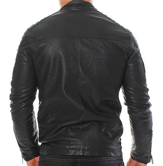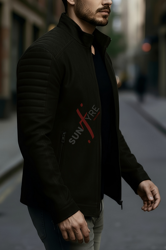 Black Quilted Leather Jacket For Men Original Sheepskin (SF149)