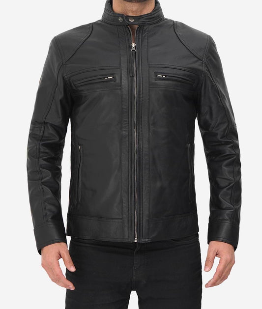 Austin Black Cafe Racer Leather Jacket For Men (SF118)
