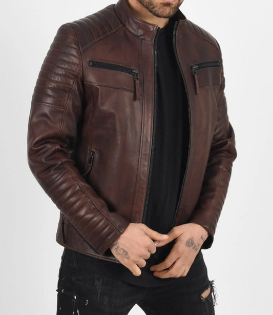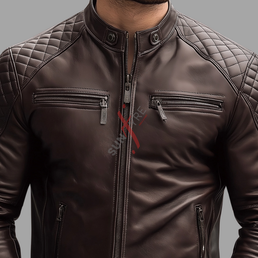 Austin Dark Brown Cafe Racer Leather Jacket For Men (SF142)