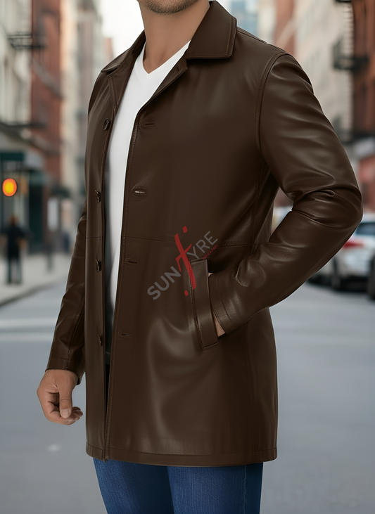 Jason Dark Brown Leather Car Coat For Men (SF136)