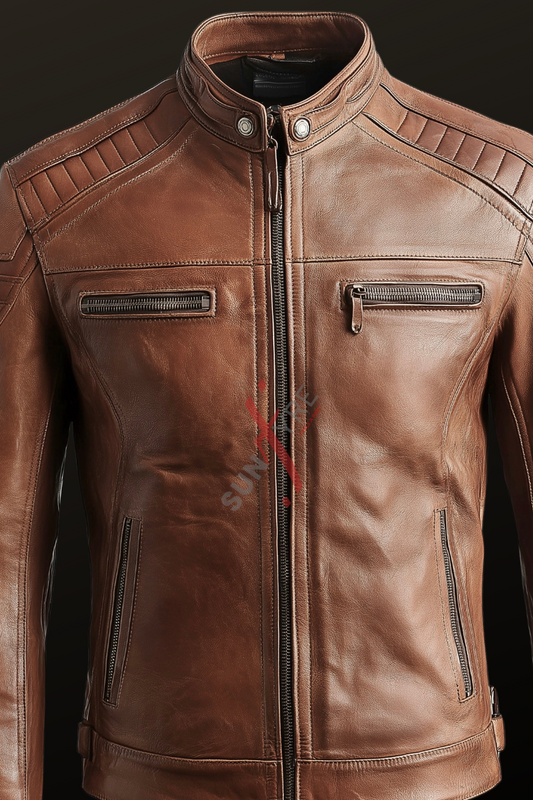 Cafe Racer Brown Leather Biker Jacket For Men Real Lambskin (SF103)