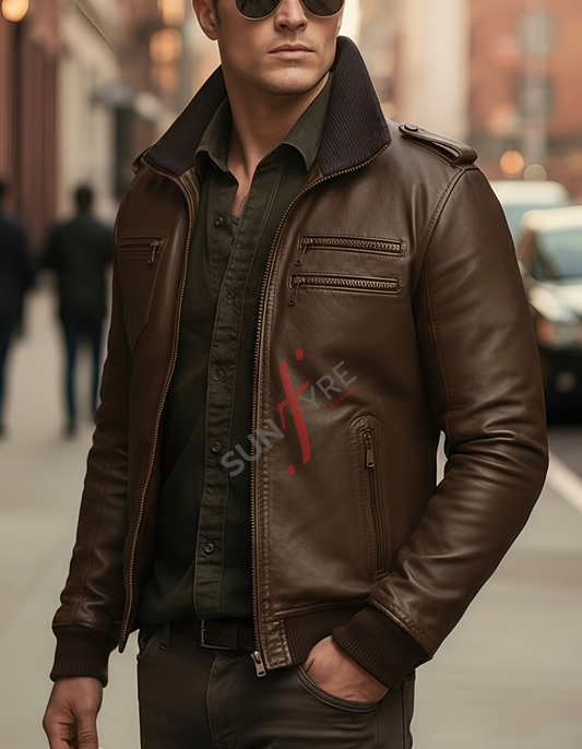 Brandon Coffee Brown Bomber Leather Jacket For Men (SF603)
