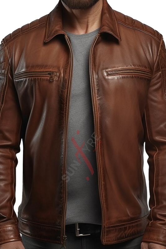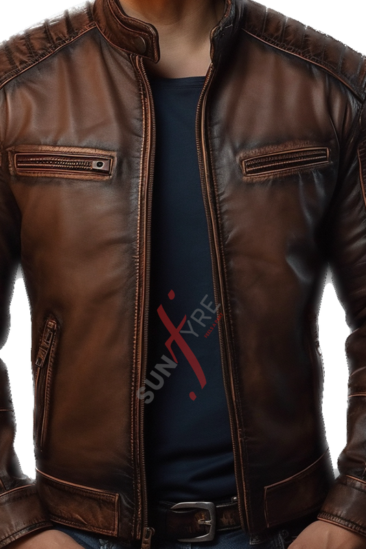 Cafe Racer Brown Distressed Leather Jacket For Men Real Sheepskin (SF599)