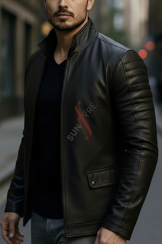 Black Leather Coat For Men in Real Sheepskin (SF133)