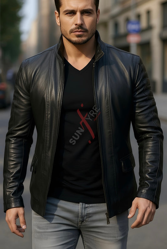 Black Leather Coat For Men in Real Sheepskin (SF105)