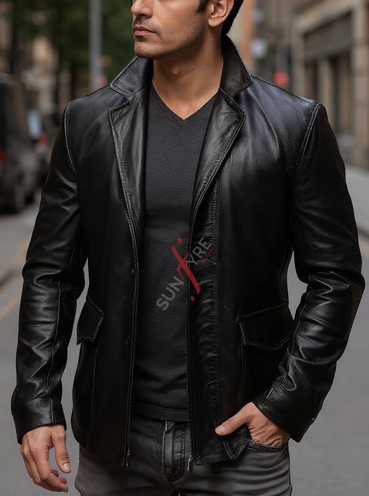 Brasca Black Leather Blazer Jacket For Men (SF596)
