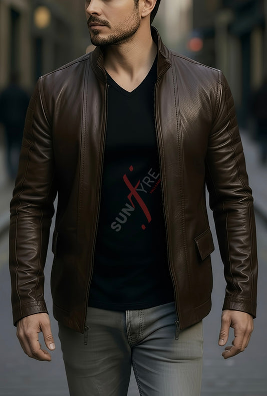 Brasca Dark Brown Leather Blazer Jacket For Men (SF546)