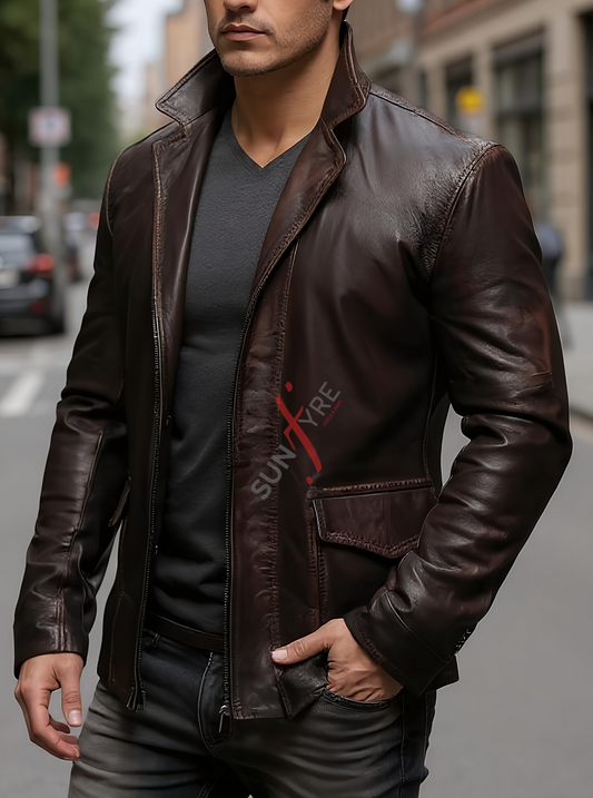 Distressed Dark Brown Leather Blazer For Men Real Sheepskin (SF533)