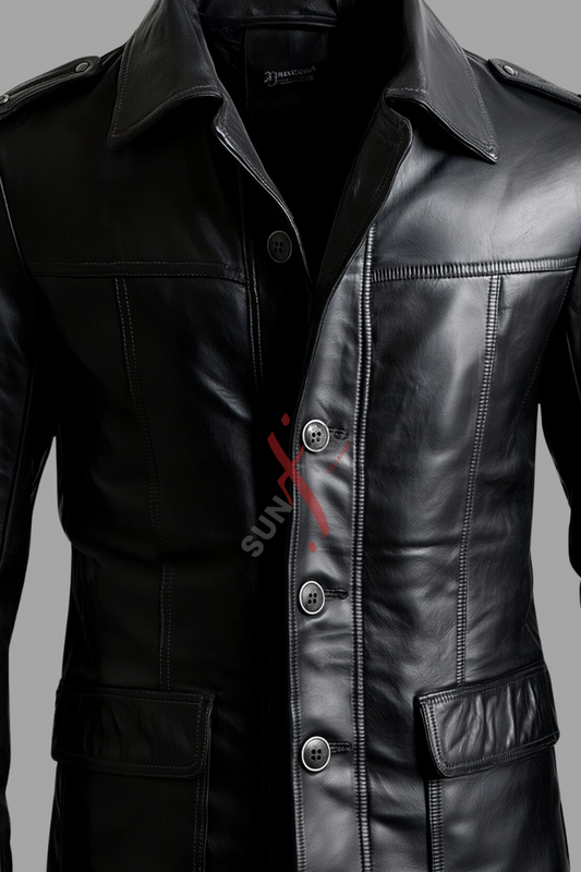 Pacino Black Leather Coat For Men (SF122)