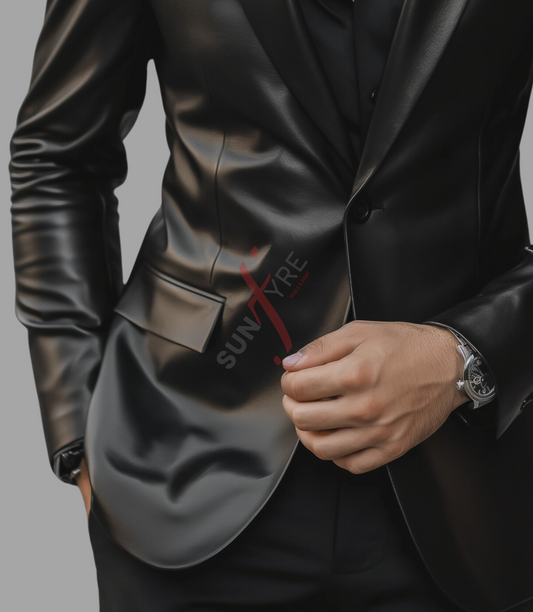 Original Black One Button Leather Blazer For Men (SF566)