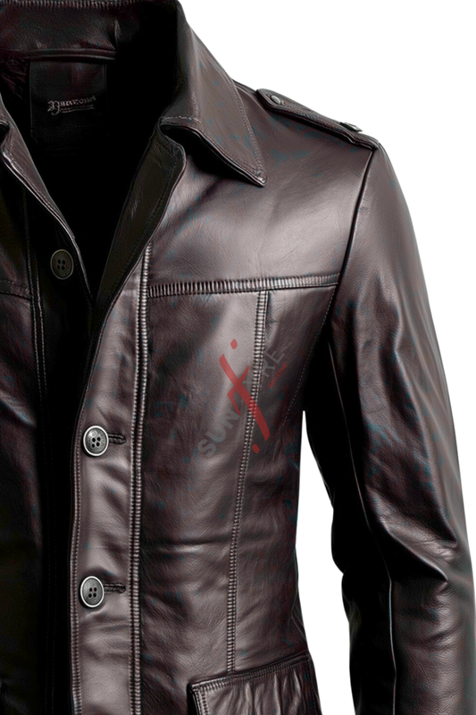 Jason Dark Brown Leather Car Coat For Men (SF136)