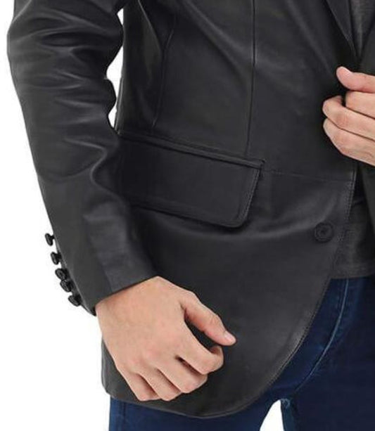 Black Two Button Leather Blazer For Men in Real Lambskin (SF113)