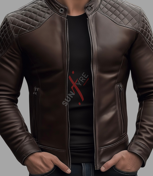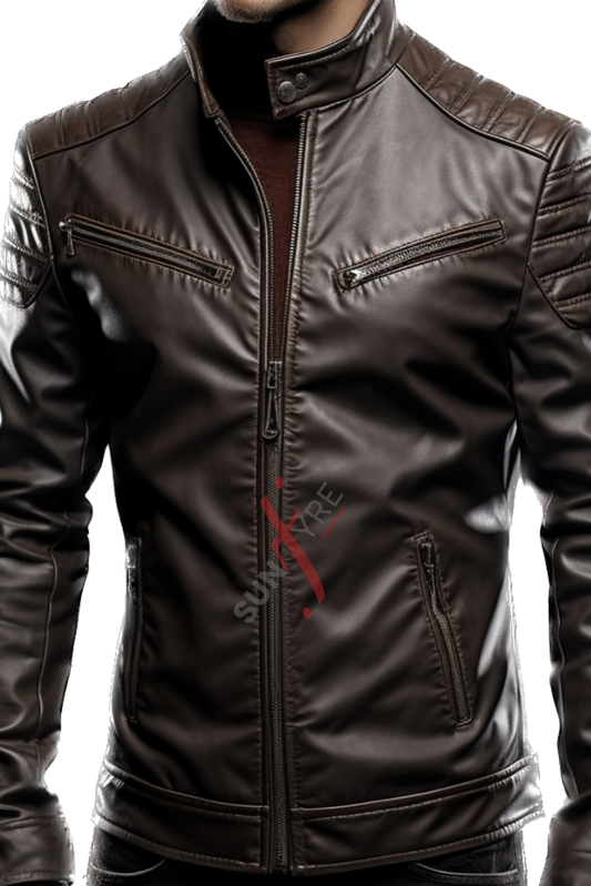 Endro Racer Brown Leather Jacket For Men (SF559)