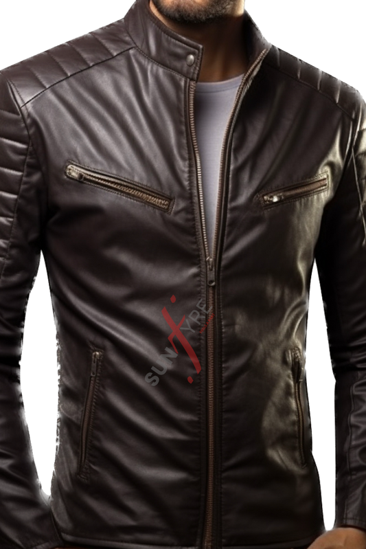 Dark Brown Quilted Leather Jacket For Men Original Sheepskin (SF605)