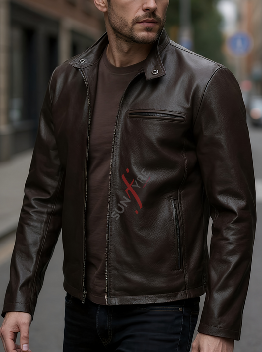 Leon Coffee Brown Racer Leather Jacket For Men (SF621)