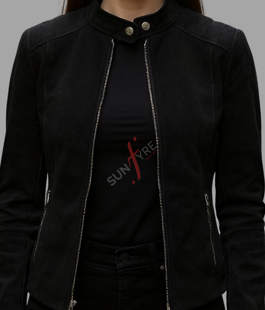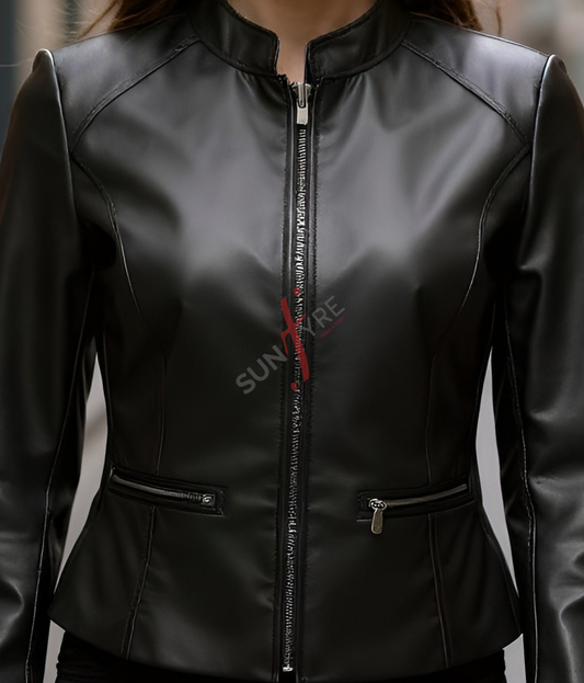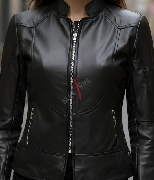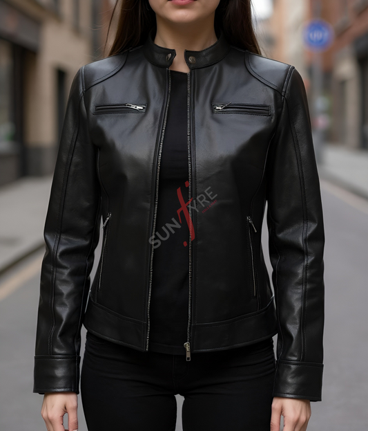 Suzan Racer Black Leather Jacket For Women (SF119)